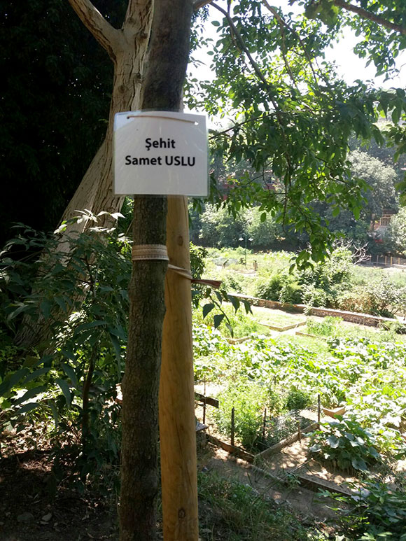 Oğullarının isminin verildiği ağacı gören anne Gönül Uslu, göz yaşlarına hâkim olamazken ağacın yanında oturup oğlu ve tüm şehitler için Kur’an-ı kerim okudu. Baba Hüseyin Uslu da oğlunun isminin verildiği ağacı sulayarak, hainlerin bir an önce yakalanıp cezalarını çekmesini istedi.