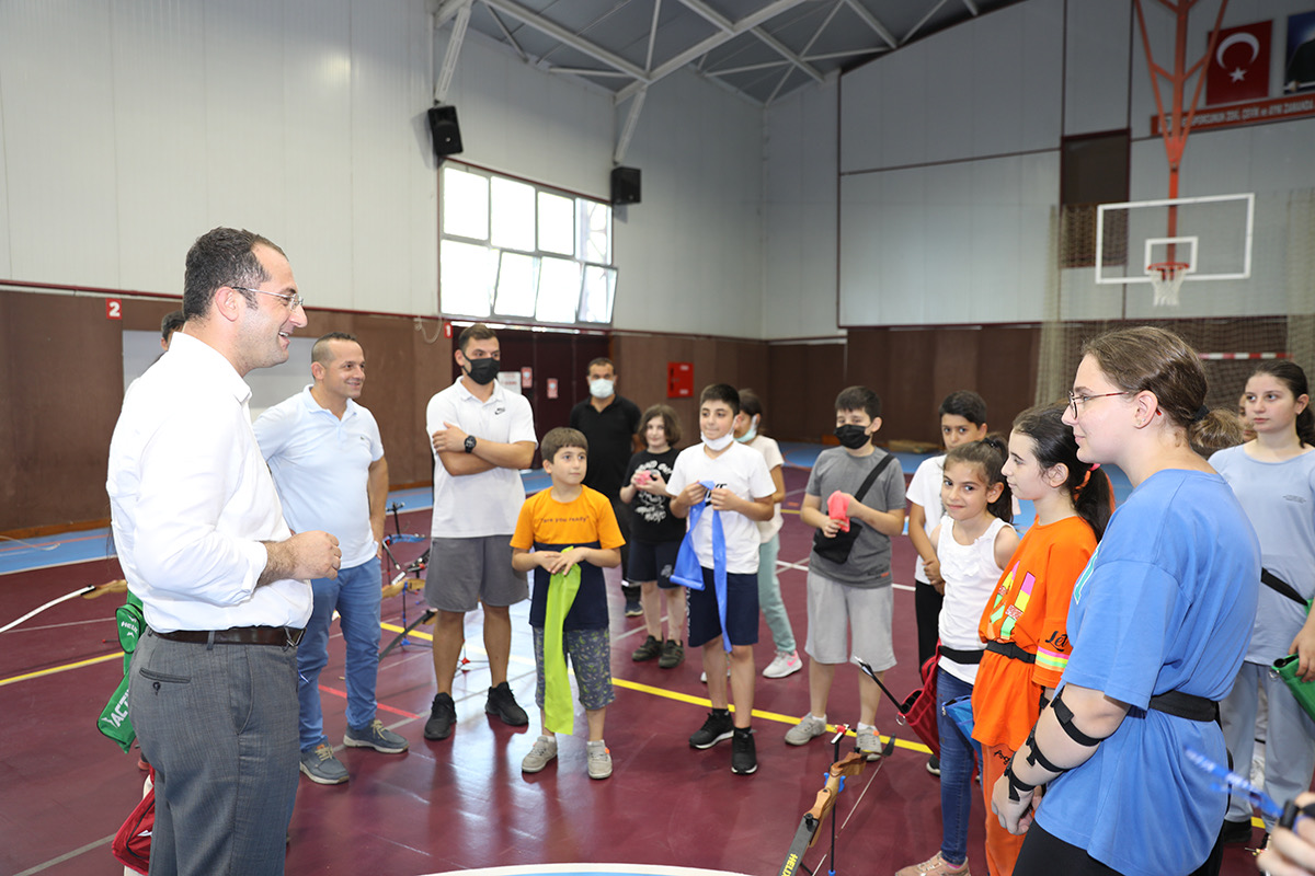 Akçaabat Belediyesi’nin düzenlemiş olduğu, 10 yaş üzeriöğrencilerin katıldığı Okçuluk kursu devam ediyor. 10 farklı branşta kursun devam ettiğini belirten Akçaabat Belediye Başkanı Osman Nuri Ekim, “Gençlik Merkezimizde öğrencilerimiz yaz dönemini öğrenerek ve eğlenerek geçiriyor. Gençlerimize birçok dalda kendilerini geliştirme fırsatı sunuyoruz. Türk tarihimizde önemli bir yere sahip olan okçuluk zor ve aynı zamanda çok anlamlı bir spordur. Çocukların gelişim evresinde oldukça önemli bir yere sahip olan okçuluk, dengeyi, motivasyonu, özgüveni arttırır ve ciğerleri geliştirir. Gelişim çağında bu spora başlandığında çocuklarımızın daha uzun boylu olduğunu görmekteyiz. Genç yaştaki arkadaşlarımızın böyle güzel spor dallarıyla buluşturulması çok önemlidir. Ailelerimiz düzenlediğimiz etkinliklerimizi takip etsinler çocuklarımızı ücretsiz kurslarımıza göndersinler hem spor yaptırıyor hem de eğitiyoruz” dedi.