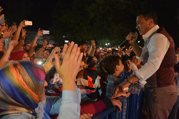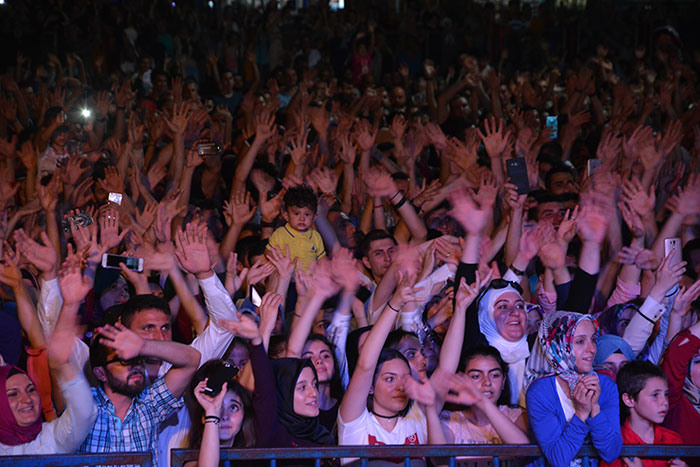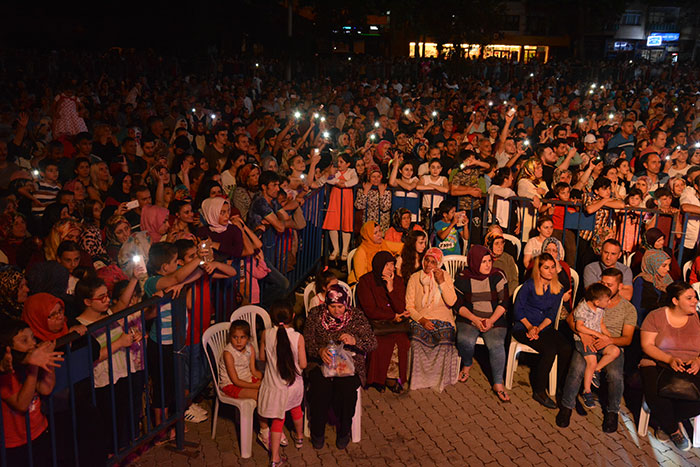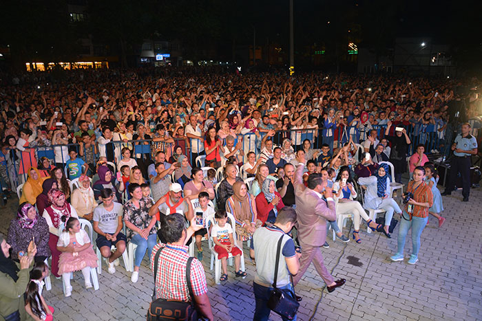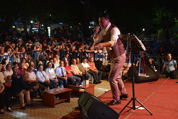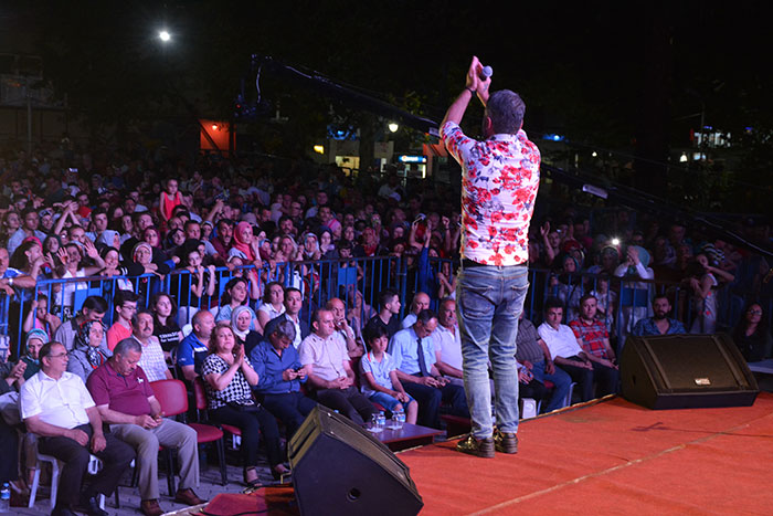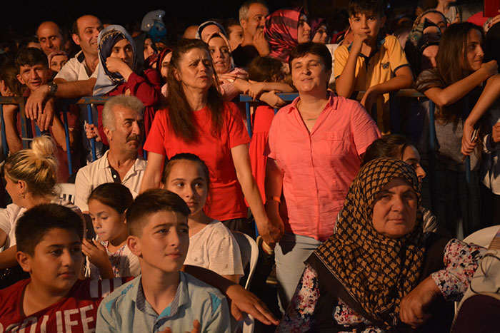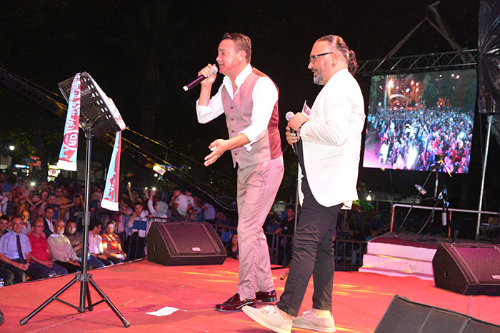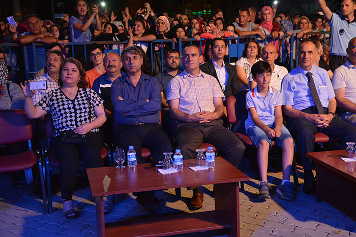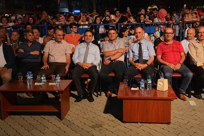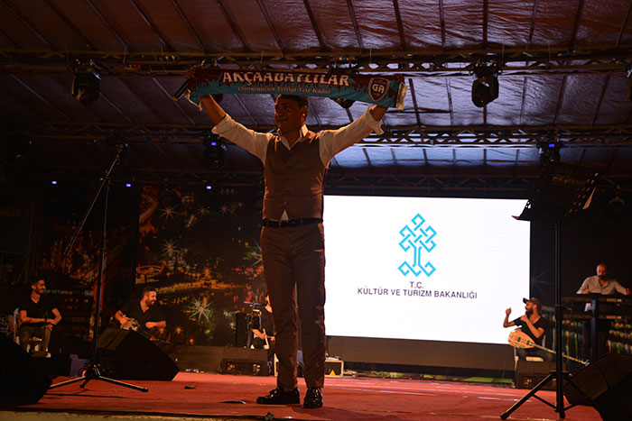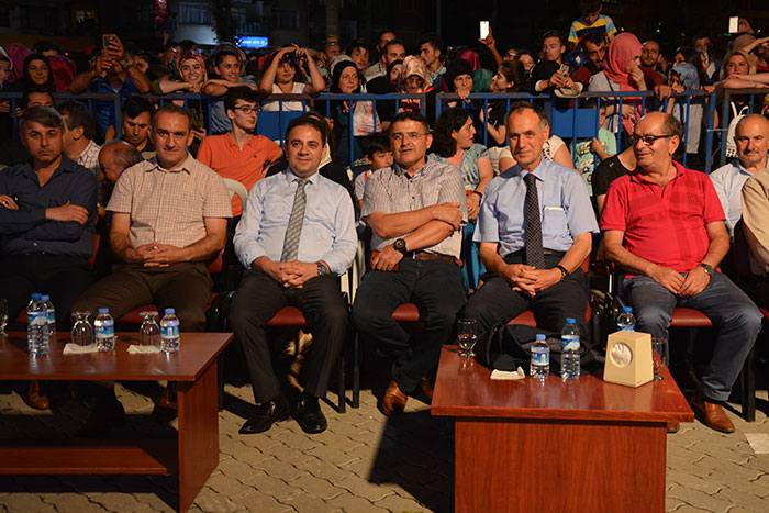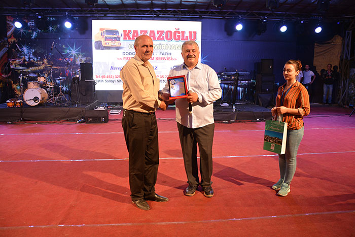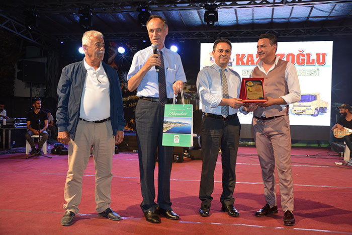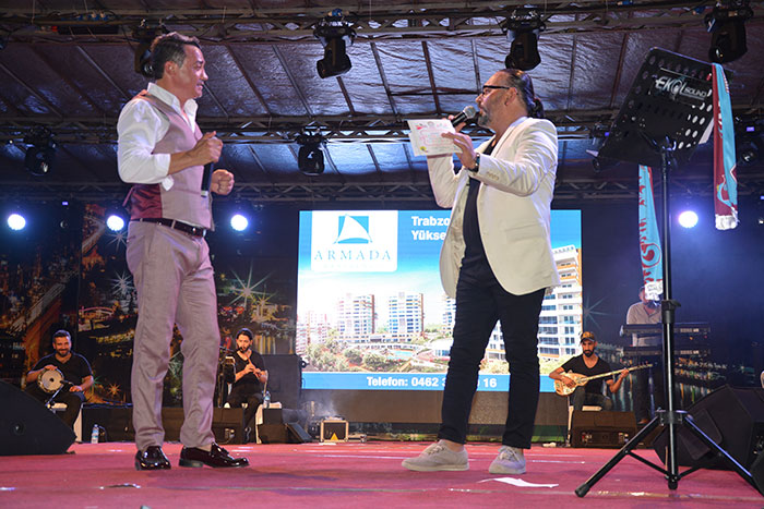 Konser sonrası protokol üyeleri 27. Uluslararası Akçaabat Müzik ve Halkoyunları Festivali’nin anısına tüm sanatçılara ve halk oyunları gruplarına plaket takdim etti.