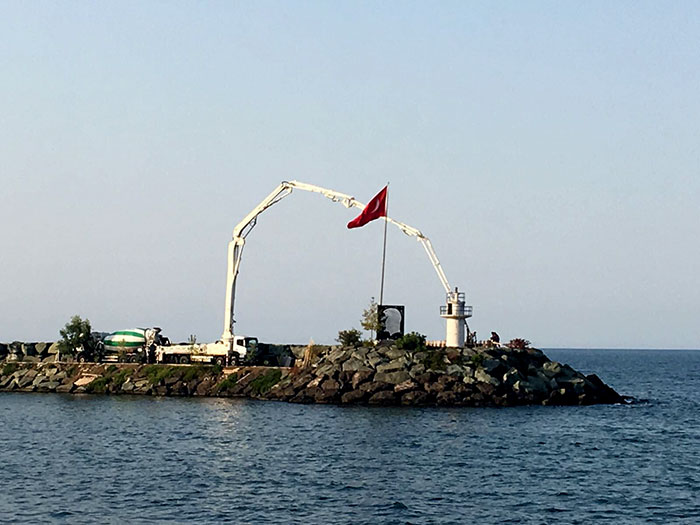 Geçtiğimiz yıllarda uzatma projesiyle mendireği uzatılan ancak maadı durumlardan dolayı tahkimatı yapılamayan Akçaabat Limanında tahkimat çalışmaları yapılmaya başlandı.