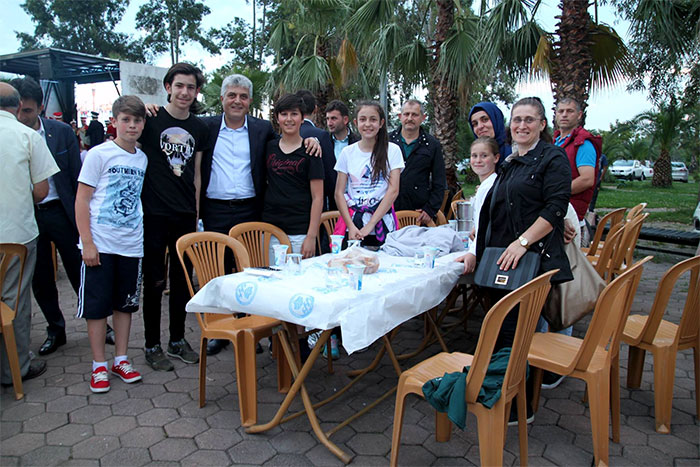 Trabzon Büyükşehir Belediyesinin Akçaabat’ta düzenlediği iftar programı yoğun katılımla gerçekleştirildi. Akçaabat sahil alanında icra edilen program Büyükşehir Belediyesi Kanuni Mehteran Takımının konseri ile başladı. İftar öncesinde tüm masaları tek tek gezerek hemşehrileri ile görüşen Trabzon Büyükşehir Belediye Başkanı Dr. Orhan Fevzi Gümrükçüoğlu, iftar sonrasında yaptığı konuşmada katılımlarından ötürü Akçaabatlılara teşekkür etti. Gümrükçüoğlu, “Bu mütevazı iftar sofralarında dünyaya gerekli mesajı veriyoruz. Tüm dünyaya nasıl birlik ve beraberlik içinde olduğumuzu gösteriyoruz” dedi. Başkan Gümrükçüoğlu ayrıca Akçaabatlıları bayramın ikinci gününde Büyükşehir Belediyesi binasında gerçekleştirilecek olan bayramlaşma törenine davet etti.