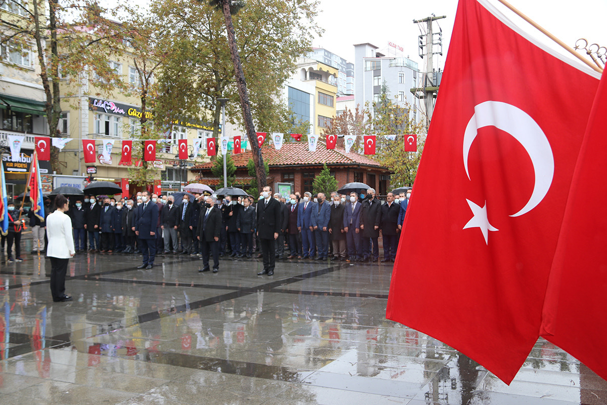 Atatürk Parkı’nda Atatürk Anıtına çelenklerin sunulmasının ardından saat 09.05’te sirenlerin çalmasıyla 2 dakika saygı duruşunda bulunuldu. Tören alanı çevresindeki vatandaşlar da siren sesi ile birlikte saygı duruşuna katıldı. Ardından ise İstiklal Marşı okundu.