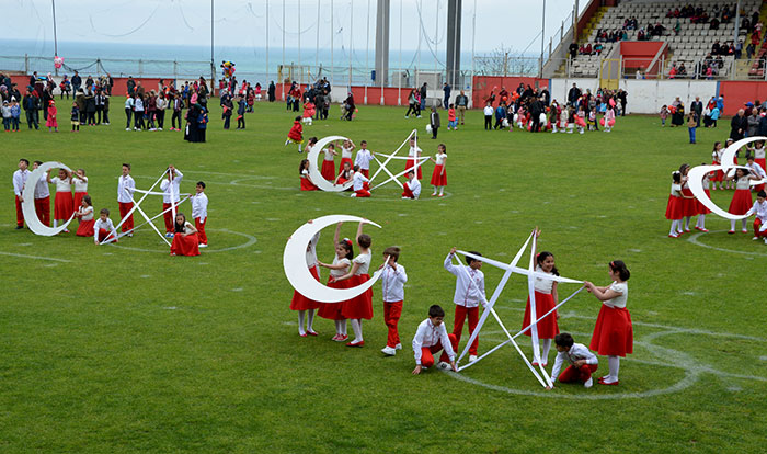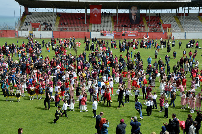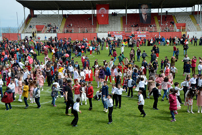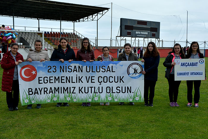 Akçaabat’ta 23 Nisan Ulusal Egemenlik ve Çocuk Bayramı kutlamalarına Fatih Stadyumu’nda devam edildi. Akçaabat merkez İlkokulu öğrencilerinin hazırladığı gösteriler izleyiciler tarafından ilgiyle takip edildi.