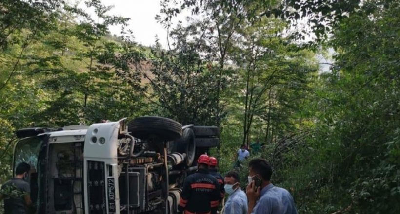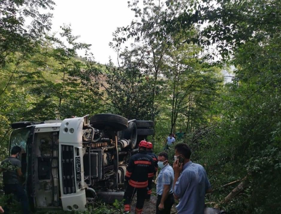 Akçaabat Belediyesine ait çöp kamyonu Doğanköy mevkisinde , rutin hattında çöp toplamaya giderken içerisindeki 3 kişi ile birlikte yaklaşık 20 metrelik uçuruma yuvarlandı.