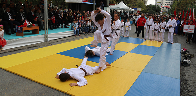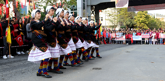 Konuşmaların ardından Atatürk İlkokulu öğrencisi Ümmügülsüm Orhan ‘Akdeniz’e Doğru’, Akçaabat Anadolu Lisesi öğrencisi Emine İnan ise ‘Cumhuriyet Destanı’ adli şiirleri seslendirdiler. Günün anlam ve önemini belirten şiirlerin okunmasının ardından Cumhuriyet Ortaokulu Kız Folklor Ekibi, Akçaabat Belediyesi erkek horon ekibinin gösterileri izlendi; Akçaabat Güzel Sanatlar Lisesi öğrencileri de hazırlamış oldukları Atatürk’ün sevdiği türküleri seslendirdiler. Gençlik ve Spor Müdürlüğü bünyesindeki sporcular, Cumhuriyet Bayramı’na özel gösteri yaptılar.