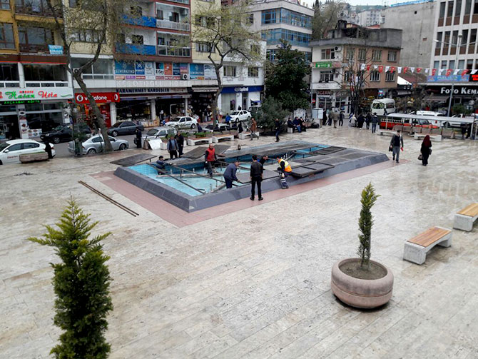 AK Parti Akçaabat İlçe Başkanlığı tarafından 14Nisan Cuma (yarın) saat 13.30’da düzenlenecek olan Akçaabat mitingi için büyük hazırlık yapıyor. İç İşleri Bakanı Süleyman Soylu ve Trabzon milletvekillerinin katılacağı miting için Akçaabat Ak Cami avlusunda hummalı çalışmalar başlarken Fatih Parkı üzerinde bulunan havuzun üzeri de demir plakalarla örtülmeye başlandı.