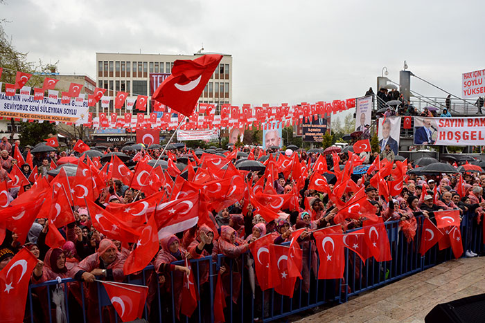 Akçaabat Ak Camii önünde düzenlenen mitinge vatandaşlar yağan yağmura rağmen büyük ilgi gösterdi. Yaşanan büyük sevgi seli nedeni ile Mitingin yapılacağı alana güçlükle ilerleyen Bakan Soylu’ya Trabzonlu vatandaşlar ‘Milletin adamı Süleyman Soylu’ tezahüratları yaptı.