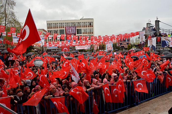 Alanda vatandaşlara seslenen Bakan Soylu: “Milletine bağlı, devletine bağlı bu güzel insanlar kar yağsa da sıcaklığı ile Dünya’yı ısıtan Akçaabat sağ olasın Akçaabat. Dün Trabzon’daydım Beşikdüzü’nde ve Of’ta böyle bir coşku ile bir arada olduktan sonra Patnos’a gittik. Orada tehditlerle birlikte oyumuzu yüzde 5’e kadar düşürmüştüler. Dertleşmeye gittik yağmur yağıyordu ama binlerce insan yüreği vatan sevgisi ile dolu insan dün akşam Patnos meydanın da bizimle birlikte oldu. Sizin selamınızı söyledim. Yağmur yağdıkça dertleştik, hasretini çektikleri sözlerle beraber dertleştik. Akçaabat oluşturduğunuz bir mesajdır. Bu Süleyman kardeşine güç. kudret destek cesaret verdi. Size 2 selam getirdim birincisi 15 yıldır bu ülkeye sadaktini ortaya koyan milletim diyen ülkem diyen benim insanım diyen bu ülkede kalkınmanın geleceğin imzasını atan ve milleti ile beraber olan cesur bir adam güvenilir bir adam tek millet diyen tek bayrak diyen tek vatan diyen tek devlet diyen milletimizin sevgilisi kıymetli Cumhurbaşkanımızın selamını size getirdim. Cumhurbaşkanımızın Akçaabat ve Trabzon’a çok teşekkürler. Meydan mitinglerinde kalabalık mitingde hemşerimizin kendisine sahip çıkmasına teşekkürü var. Kıymetli Başbakanımızın havalimanı köprüler, hızlı trenleri milletimizin hizmetlerini gerçekleştiren Binali Yıldırım beyin selamlarını getirdim. Diz çöktürmek istediler, Bu kıymetli toprakları esaret içerisinde bir millet olarak yönetmek istediler başaramadılar. Bu millet elinde silahı ayakkabısı yokken bağımsızlığını kimseye vermedi. Bu güzel cumhuriyeti hür ve bağımsız yaptılar. Bu ülke çok sıkıntılardan badirelerden geçti. bu milleti ayağa kaldırmamak için bu ülkeyi ufkunu geleceğe baktırmak için bu ülkenin üzerine planlar oyunlar kurdurlar. Darbeler yaptılar. Bu ülkede ezanımızın sesini kıstılar. İnançlarımıza değerlerimize saldırdılar. Bu ülkeden insanlarımız değerleri inançları kimliğinden ötekileştirdiler” dedi.