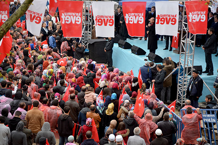 Soylu, sözlerine şöyle devam etti: “Diyorlar ki darbecilere anayasa yaptırırız siye anayasa yaptırmayız diyorlar. Bu millet korkak bir millet değildir. Asil bir millettir. 10 yıllarıdır başkalaştırmaya çalışıyorlar. İrtica, karanlığa gidiyorlar, Sünni Kürt, bası açık başı kapalı diyorlar bu güçlü milleti bölmek ve parçalamak için her şeyi yapıyorlar. On yıllardır başardılar. %70 Devalüasyonla milleti fakirleştirdiler. hiç bir esnafın derdi yokken hacizlerle boğuşturdular döviz operasyonları ile yaptılar. Alevi Sünni Kürt fişledirler hepimiz ordaydık. Bu millet büyük olduğunu bir kez daha gösterdi. kimseden korkmadı Erdoğan’ı aday olmamasına rağmen başa getirdi. Burada görüyoruz herkes bir şey söylüyor. elbette söyleyecekler. herkes yüreğindeki taşı dökecek. korkutmak yok şiddet yok yalan yok herkes eleştirebilir. Biz bu ülke için çalışıyoruz, millet vatan için çalışıyoruz. Bizi denize dökeceklere sormak istiyorum. CHP’li kardeşlerim Kılıçdaroğlu birileri ile işbirliği yapıyor. Kılıcadaroğlu bu ülkenin millet tarafından yönetilmesini istemiyor. Bu milletin pranga içerisinde devam etmesini istiyor. Bu ne düşmanlıktır bu ülkenin ezanına bayrağına bu ülkenin namusuna göz diken düşamanlardan daha mı uzağız. Biz ne yaptık bu ülkeye. Sabah saat 4’ünden akşam 4’e kadar doktorun yüzünü beklerken bugün insanımızın evine doktor hemşire geliyor. Herkes bugün bu ülkeden bir taraftar bir yere rahat bir şekilde uçakla gidiyor. Biz ne yaptık bu ülkenin namusuna göz dikenlerden kötü olduk. İnsansız hava uçağını benim evlatlarım yapıyor. İsrail en zor zamanda bizi yarı yolda bıraktı yapmayız dedi. biz yaptık. Biz çoktan gemileri yaktık Akçaabat. Avrupa’ymış el koyamazmış, terörle mücadele onların dediği gibi yapacakmış. bu ülkenin basına kim musallat olursa onu bitirmesek namerdiz Akçaabat. Biz şehir hastaneleri, herkes kendisini ifade edebiliyor. ürkmüyor başörtülü başı acık mecliste oturuyor. Herkes umutla yarına bakıyor.”