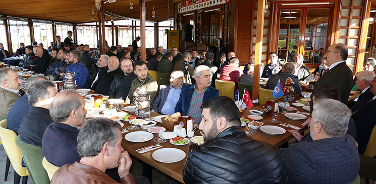 Trabzon Büyükşehir Belediye Başkanı Dr. Orhan Fevzi Gümrükçüoğlu, Akçaabatlı esnaflar ile bir araya geldi. Olimpiyat Parkında gerçekleştirilen programda Akçaabat Esnaf ve Sanatkârlar Odası yönetimi ile Akçaabatlı esnaflar hazır bulundu. Trabzon’da sürdürülen çalışmalar hakkında bilgilendiren Akçaabatlı hemşehrilerini bilgilendiren Gümrükçüoğlu, Trabzon genelinde yüksek bütçeli dev işler yaptıklarına dikkat çekti. Cumhurbaşkanı Recep Tayyip Erdoğan’ın önderliğinde tüm kamu kurumlarının Trabzon’da büyük işlere imza attığını ifade eden Gümrükçüoğlu, “Hedefimiz bu kadim şehri dünyanın sayılı şehirlerinden biri haline getirmektedir. Bunun için altyapıdan üst yapıya kadar her alanda ciddi işler yapıyoruz. Akçaabat, şehir merkezinden sonra Trabzon’umuzun en büyük ilçesidir. 4 yılda sadece Fen İşleri Dairemiz ve TİSKİ Genel Müdürlüğümüzce Akçaabat’ta tamamlanan ve yapım çalışmalarına devam edilen yol ve altyapı yatırımlarının toplam maliyeti 135 milyon TL’yi aşmıştır. Bunların dışında Bunun dışında yine Akçaabat için 2018 yatırım programına aldığımız veya projelerini hazırlamakta olduğumuz içme suyu ve kanalizasyon yatırımlarımızın tahmini toplam maliyeti de 42 milyon TL’nin üzerindedir. Bu yatırımlarda Akçaabat’ımızda en kısa sürede sahaya tatbik edilecektir. Yine yol seferberliğimize bu yılda her ilçemizde olduğu gibi Akçaabat’ımızda da devam edeceğiz” diye konuştu.