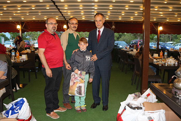 Akçaabat Belediye Başkanı Şefik Türkmen, Yetimler Günü sebebiyle verdiği iftar yemeğinde yetim çocuklarla bir araya gelerek onlara bayramlık hediyeler verdi.