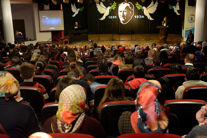 Saygı duruşunda bulunulması ve İstiklal Marşının okunmasıyla başlayan törende, Cumhuriyet Ortaokulu öğretmenlerinden Saniye Tayar günün anlam ve öneminin belirten konuşma yaptı. Konuşmanın ardından Cumhuriyet Ortaokulu anasınıfı öğrencilerinden Tahir Ulutepe “Atatürk” isimli şiiri seslendirirken Cumhuriyet Ortaokulu öğrencileri “Atatürk isimli oratoryoyu sahneledi.