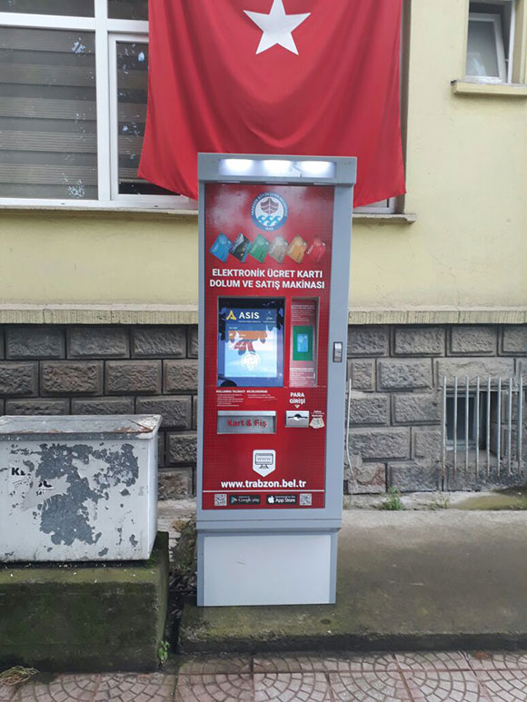 Trabzon Büyükşehir Belediyesi, belediye otobüslerinde yolculuk için uygulamaya koyduğu Elektronik ücret kartının bakiyesinin bitmesi halinde vatandaşın mağdur olmaması için şehrin çeşitli yerlerine Elektronik ücret kartı dolum ve satış makinaları yerleştirdi.