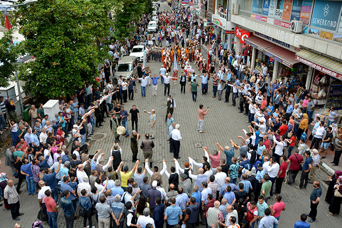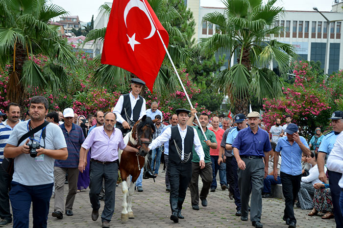 Akçaabat Belediye Başkanı Şefik Türkmen, kortej yürüyüşünün bir bölümünü at üzerinde yaptı. Sahil Park alanında yöresel sanatçılar eşliğinde büyük horon halkası oluşturuldu.
