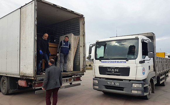 Hayırsever kadınlar Muazzez Demiryürek ve Fatoş Özyurt; hasta, yaşlı, ihtiyaçlı ve engelli vatandaşlar için kullanılmak üzere içerisinde etejerli karyola, tekerlekli sandalye, elektrikli yaşlı kaldırma aracı, hasta bezi ve giyim malzemesi bulunan bir TIR dolusu yardım malzemesini Trabzon Büyükşehir Belediyesine teslim ettiler. Yardım malzemelerini teslim alarak hayırsever vatandaşları makamında ağırlayan Trabzon Büyükşehir Belediye Başkanı Dr. Orhan Fevzi Gümrükçüoğlu, faaliyetlerinden ötürü Demiryürek ve Özyurt’a teşekkür etti.