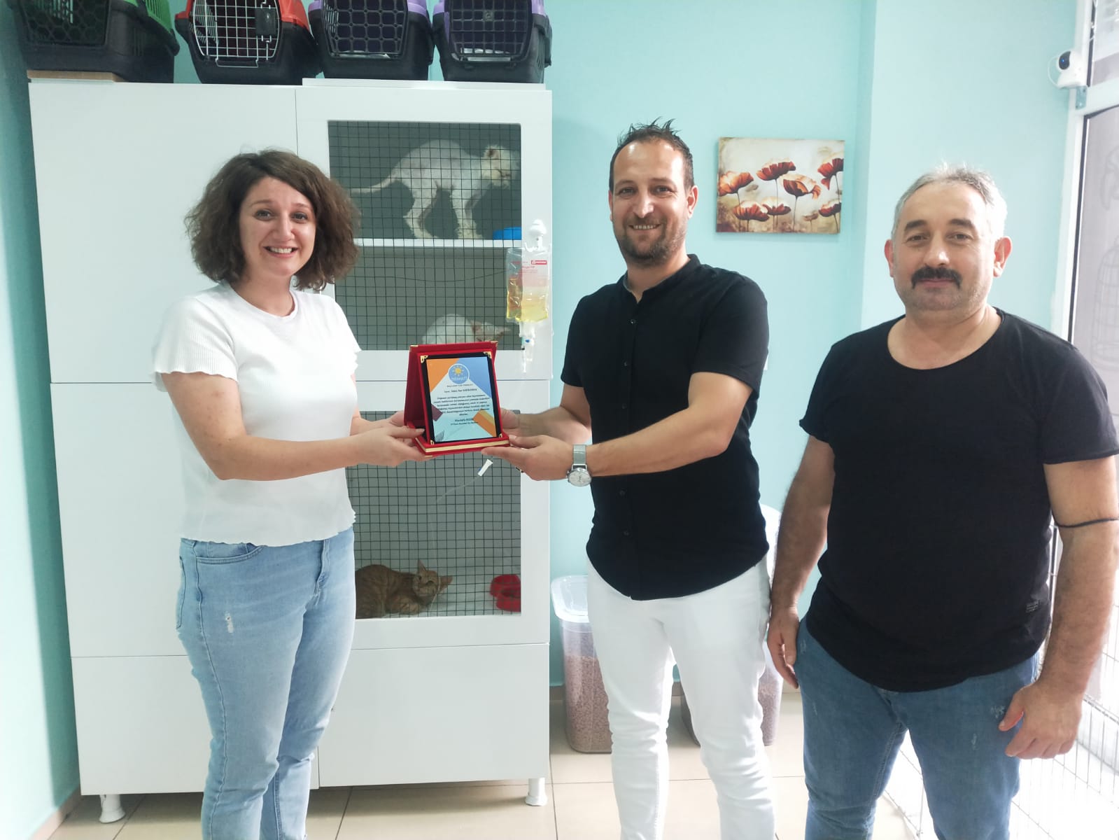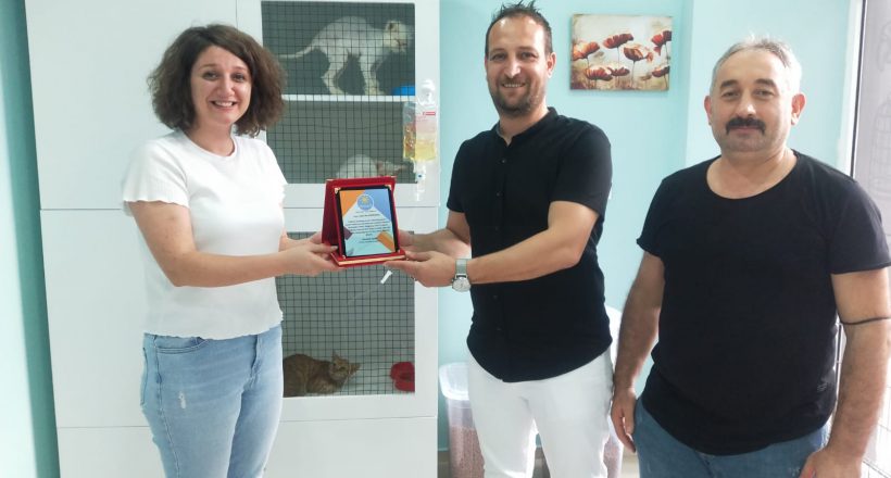 İYİ Parti Akçaabat İlçe Başkanı Mustafa Mısır, ilçede sokak hayvanlarına yardım eden Veteriner Hekim Selen Nur Kahraman ve ilçede organik tarım üretimi yapan İsa Lüleci’ye plaket verdi.