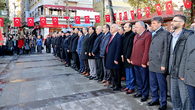 İlçe Milli Eğitim Müdürlüğü’nün Atatürk Anıtı’na çelenk sunmasının ardından saygı duruşunda bulunuldu ve İstiklal Marşı okundu.