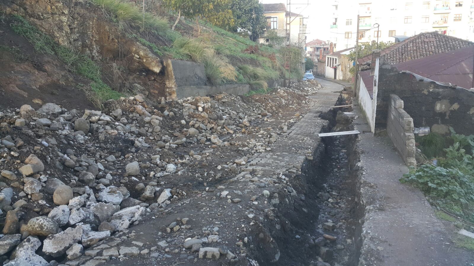 Yeni yapılan 20 m.lik yol dolayısıyla Ortamahalle’nin trafiği en yoğun olan bağlantı yolu Yeni cami sokak maalesef hâla trafiğe açılamadı.