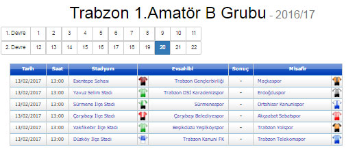 Temsilcimiz 13 Şubat Pazartesi günü saat 13.00’da Çarşıbaşı ilçe stadında Çarşıbaşı Belediye spor ile karşılaşacak.