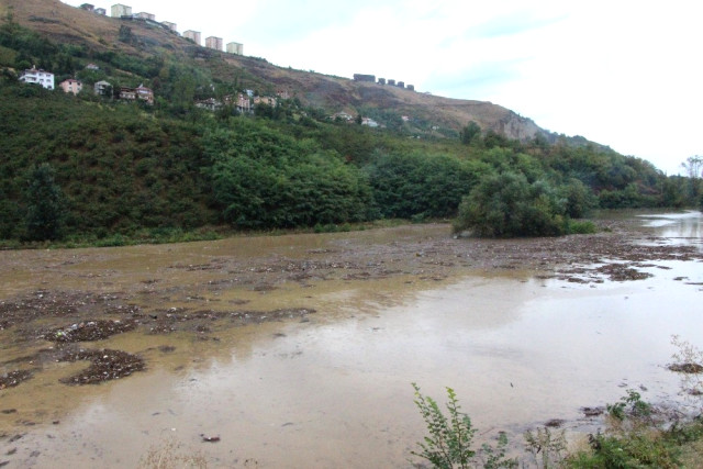 Akçaabat’ın turizm merkezi Sera Gölü şiddetli yağışların getirdiği çöp ve çamurlarla kaplandı.