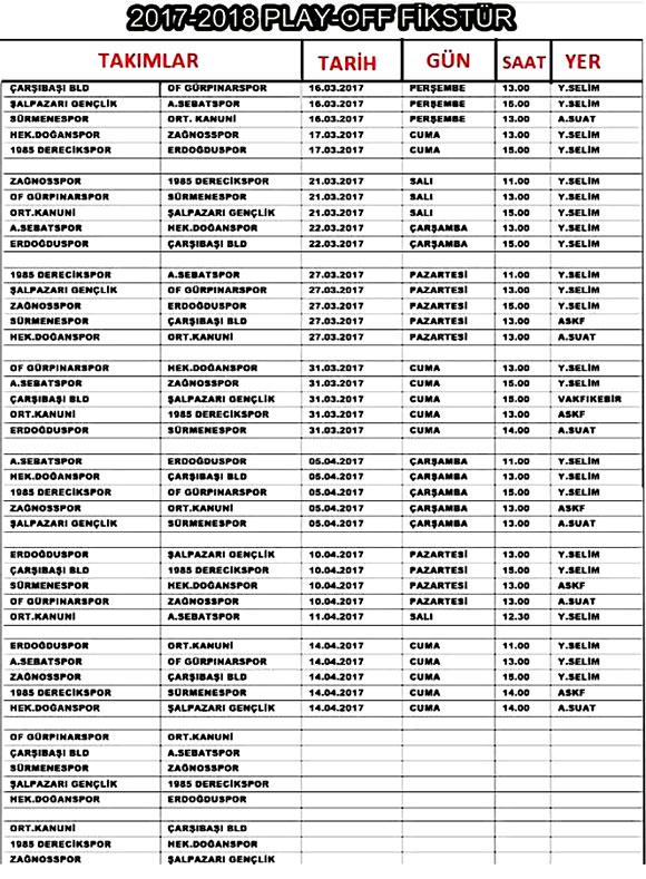 Trabzon 1.Amatör kümede gruplarını ilk beş sırada tamamlayan takımların Bölgesel Amatör Ligine yükselme adına kıyasıya rekabete sahne olacak play-off kuralarının ardından maç programları belli oldu.