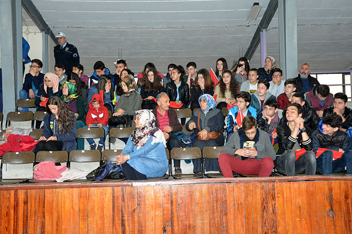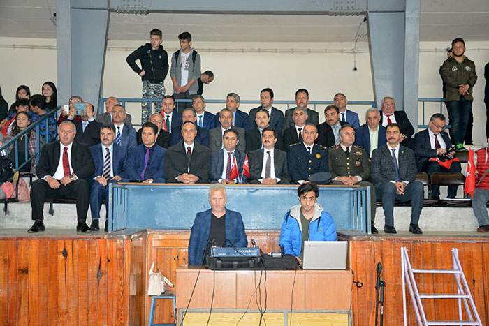 Uzun yıllardan beri ilk kez Fatih Stadyumu’nda düzenlenen kutlama programı, hava muhalefeti nedeniyle Gençlik Hizmetleri Spor İlçe Müdürlüğü Kapalı Spor Salonunda yapıldı.