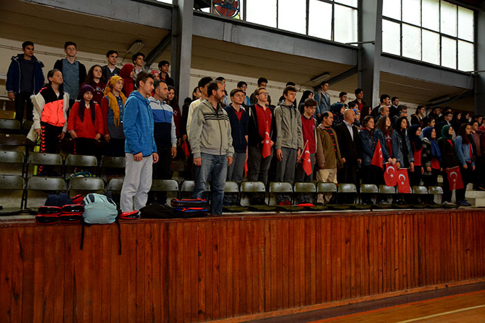 Sunuculuğunu Akçaabat Anadolu Lisesi Türk Dili ve Edebiyatı Öğretmenleri Cem Cihan ve Emer Ömeroğlu’nun yaptığı kutlama programı, Saygı duruşunda bulunulması ve İstiklal Marşının okunmasıyla başladı.