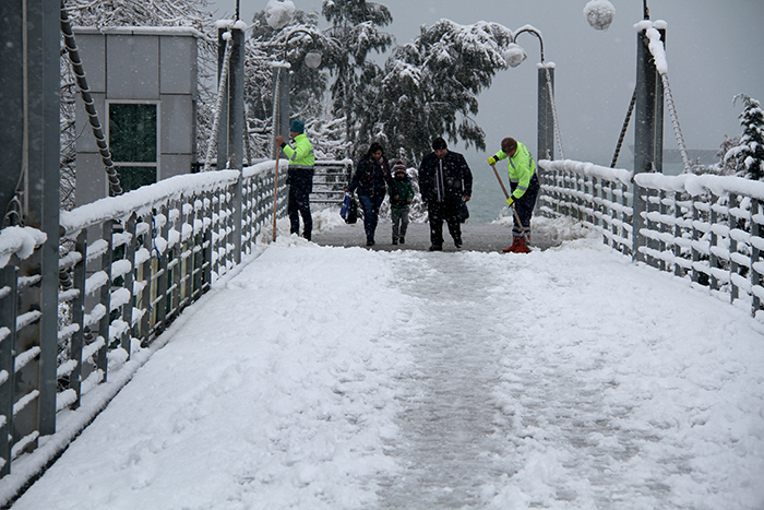 Akçaabat Belediyesi, dün akşam saatlerinden itibaren başlayan kar yağışının ardından vatandaşların yoğun olarak kullandıkları güzergahlardaki kaldırım ve yolları temizliyor.
