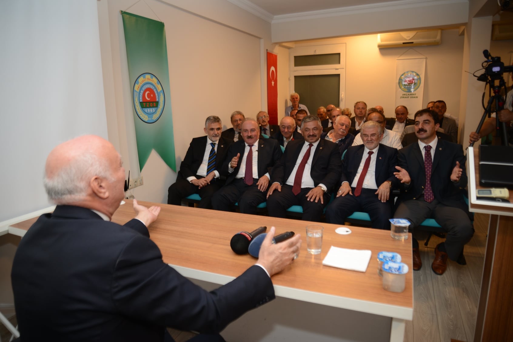 Toprak mahsulleri ofisinin piyasaya girmesine rağmen ilk başta serbest piyasada fındık fiyatları yine de düşürülmeye çalışıldığı burada Ziraat Odaları olarak çiftçimizi doğru yönlendirerek ofise fındık vermelerini sağlayarak piyasada fındık fiyatının yükseltilmesine sağladık üreticilerimiz den talebimiz fındığı saklamanın zor olduğunu bilmemize rağmen ellerinden geldiği kadar emanete fındık vermemelidir ihtiyaçları olduğu kadar fındığı piyasaya getirerek fındık fiyatlarının serbest piyasada da istediğimiz rakamda gerçekleşmesini sağlayacağız bizler Ziraat Odaları ve Ziraat Odaları Birliği olarak elimizden gelenden fazlasını yapıyoruz yapmaya devam edeceğiz burada üreticilerimizin den ricamız Toprak mahsulleri ofisi ürünlerini vererek serbest piyasada fındık fiyatının yükseltmesi dir