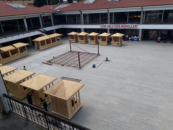 Toplam 14 Adet ahşap büfe yapımı büyük oranda tamamlanırken, büfelerde yöresel el işi ürünleri satılması ve çarşıya hareket getirilmesi düşünülüyor.