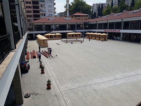 Proje kapsamında, belediye tarafından daha önce yapılan ihaleyle inşa edilen ahşap büfeler çarşının orta kısmına yerleştirilmeye başlandı.