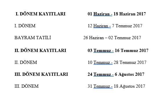 2017 YILI YAZ KUR’AN KURSLARI DÖNEM KAYITLARI